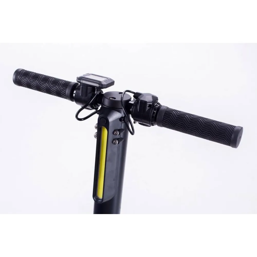Благодаря складной конструкции модели обеспечено удобство хранения дома и перевозки в автомобиле или общественном транспорте – электросамокат не будет занимать много места. К тому же, его вес составляет всего 7,3 кг – с ним справится даже ребенок.