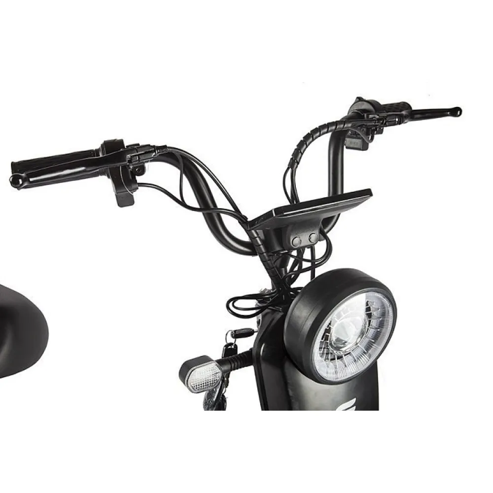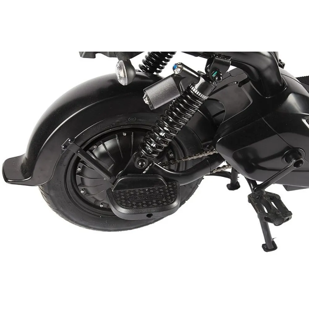 Модель грузоподъемностью 150 кг оснащена двигателем мощностью 350 Вт, способным достигать скоростных показателей до 25 км/час. Удобство и комфорт езды обеспечены мягким вместительным сиденьем, рассчитанным на двоих. Повторяя анатомические части тела материал изготовления и конструкционные особенности сиденья снижают нагрузку на позвоночник, снимают утомление.