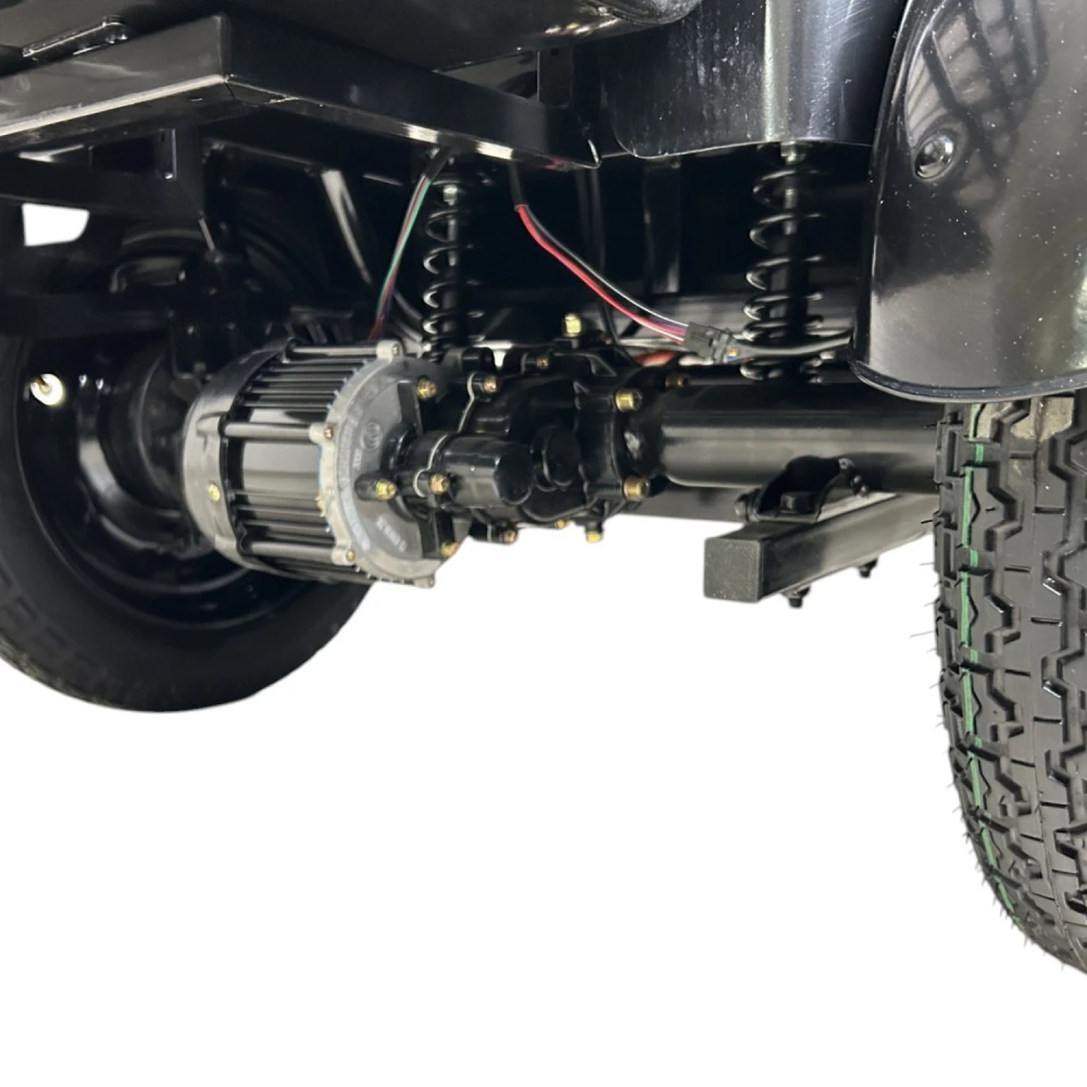 Простая и ремонтопригодная система: задний привод, барабанные тормоза, стандартный мотор и батарея.