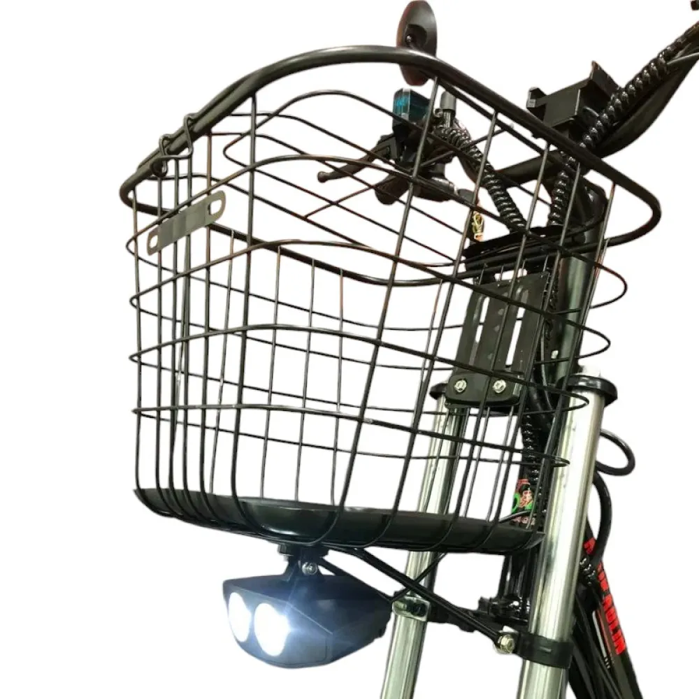 В комплекте: электровелосипед, аккумулятор, зарядное устройство, багажник, корзина.