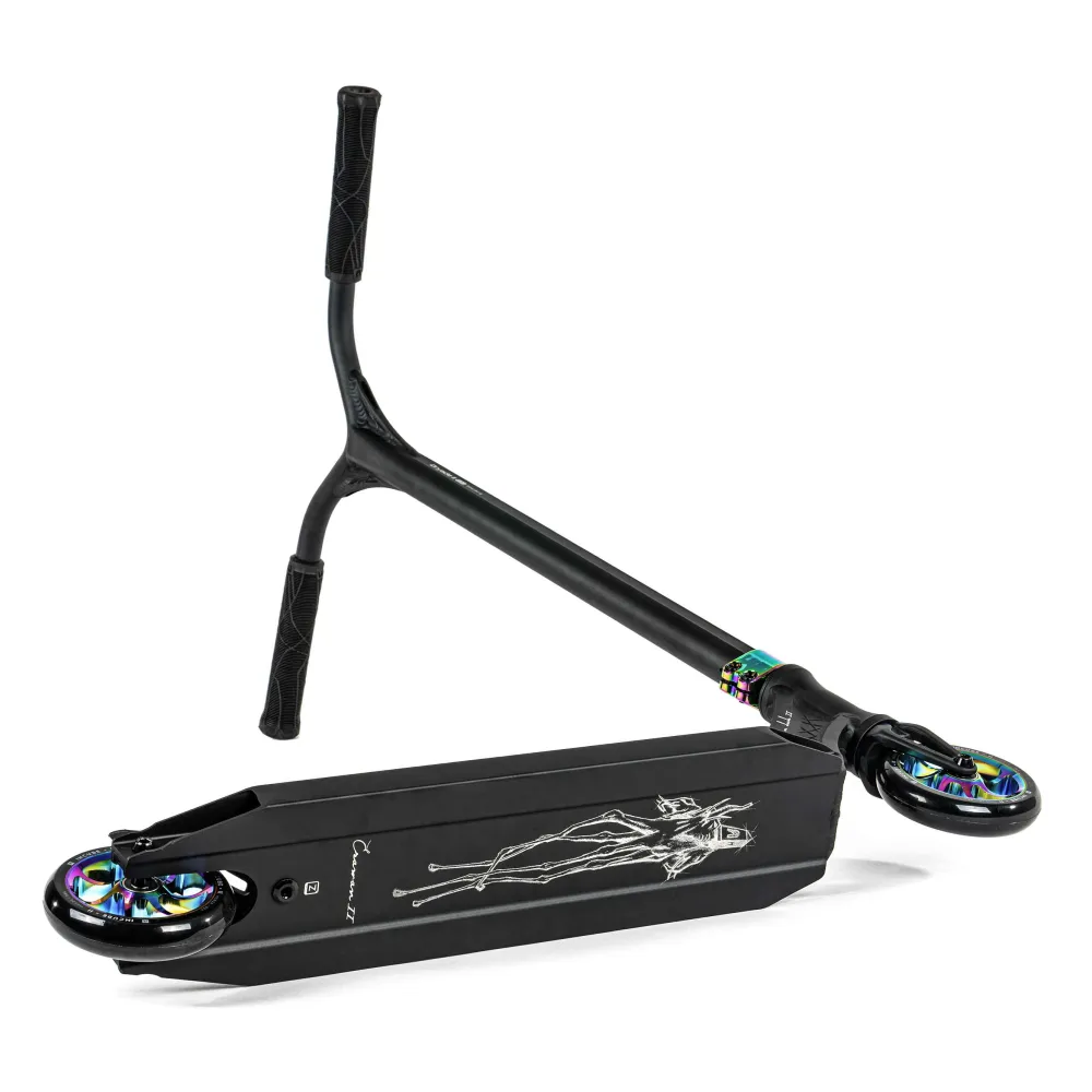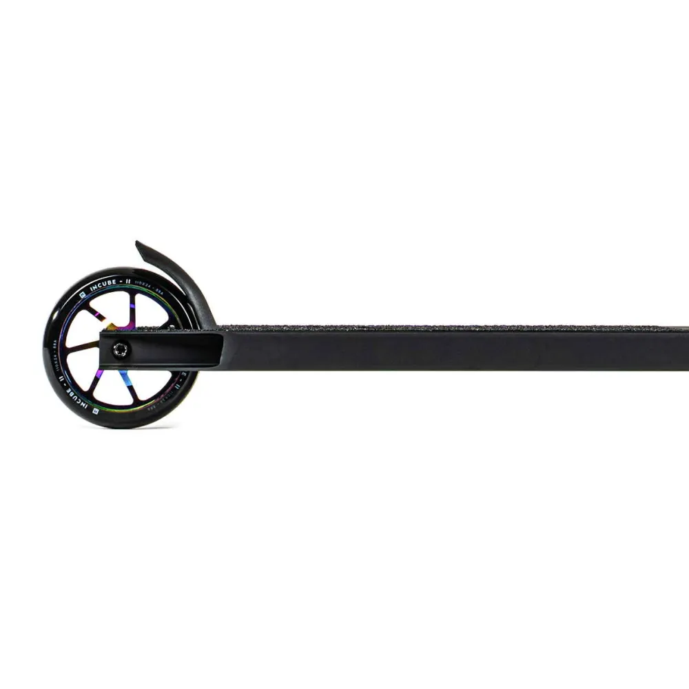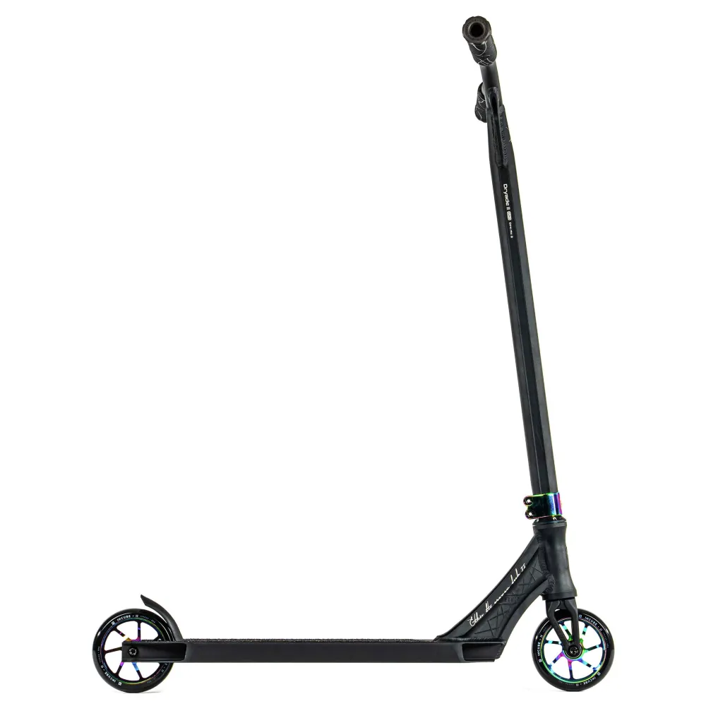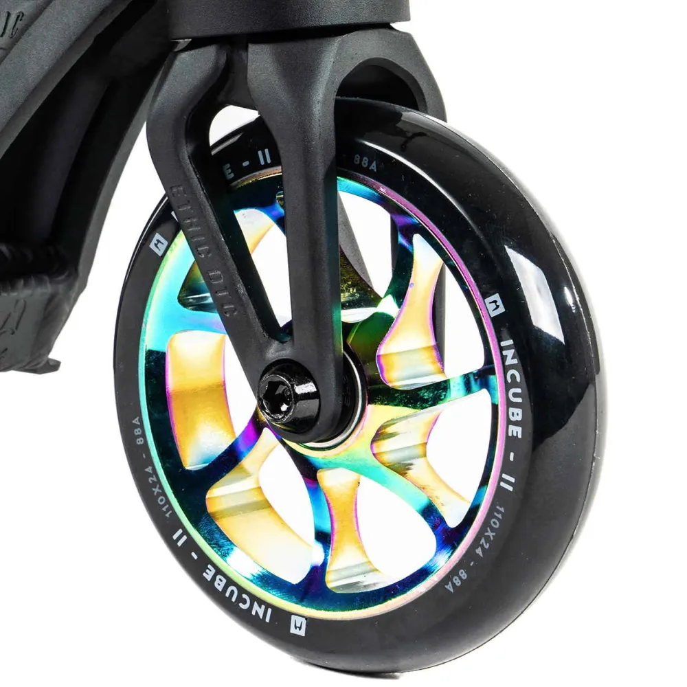 Эта модель привлекает внимание своим уникальным дизайном, сочетающим строгие черные тона с яркими акцентами градиентного цвета, напоминающего эффект бензинового пятна. С весом 2.79 кг, самокат обеспечивает легкость и маневренность, позволяя вам выполнять самые смелые трюки. Диаметр колес 110 мм и подшипники класса ABEC 9 гарантируют плавность и скорость, делая каждую поездку комфортной и безопасной.