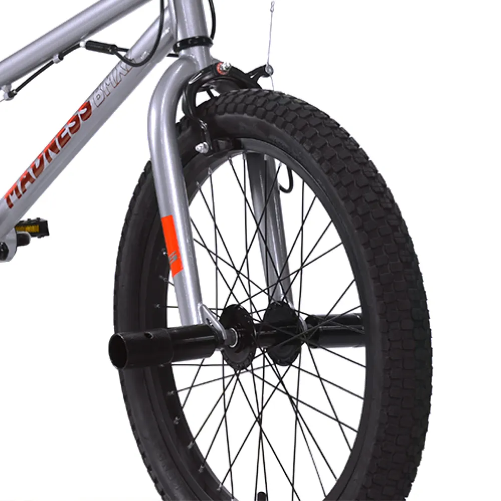 Трюковые велосипеды марки Stark Madness BMX 2 (2022) производит впечатление не только своим эффектным внешним видом, но и качественными техническими возможностями. Несмотря на то, что комплектация данной модели не относится к профессиональной, велосипед является идеальным вариантом для освоения навыков экстремальной езды, прыжков и трюков. Благодаря фирменным покрышкам Kenda K905 2,35" модель отличается высоким сцеплением с грунтом. Седло Cionli #9066 – комфортное и надежное, а кроме того, имеет стильный дизайн. Быстрое торможение велосипедов stark на любых типах дороги обеспечены задними тормозами Sparkle U-969D. Алюминиевая рама Hi-Ten 13A  выполнена из сверх прочного материала, благодаря чему отличается устойчивостью, оставаясь при этом достаточно легкой. Кроме того необходимо отметить жесткую стальную вилку, отвечающую за комфортное управление велосипедом madness bmx stark. Также отличительной особенностью модели является наличие гироротора, за счет которого выполнение трюков становится более безопасным, так как снижается риск спутывания тормозов.